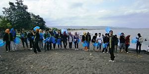 "Ayo foto bareng mumpung lagi di Pulau Merah. Pantainya luar biasa," kata Kapolda.