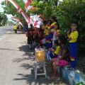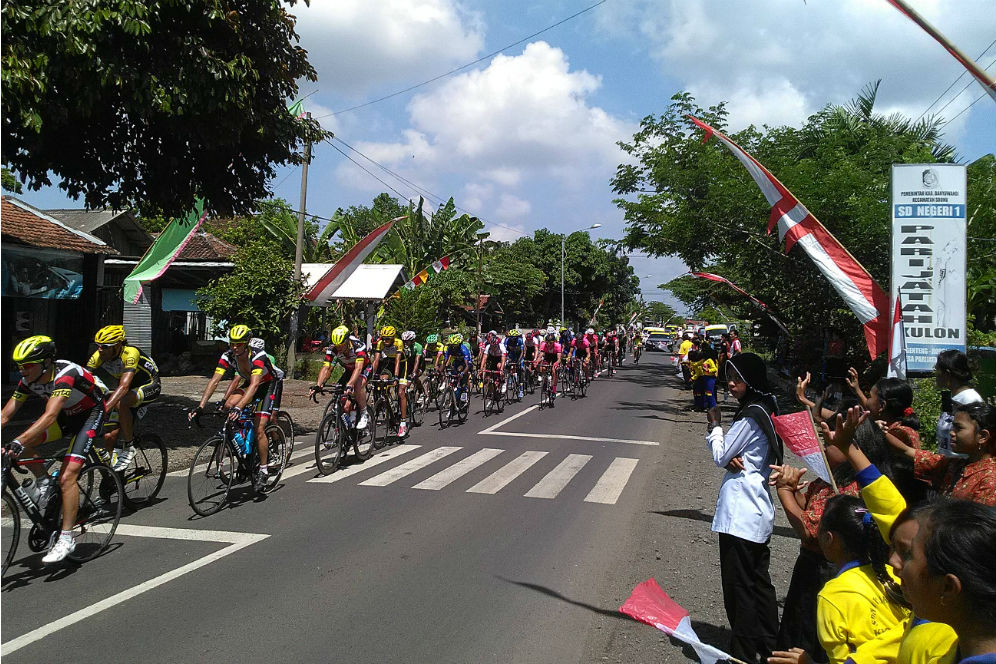 Para siswa-siswi SD memang sengaja diikutsertakan untuk memeriahkan ITdBI etape pertama ini. Sejak pukul 08.00 WIB, mereka sudah terlihat sibuk berlatih, sambil menunggu para pebalap sepeda lewat.