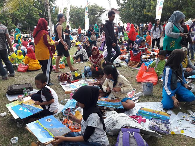 Peserta TK dan SD antusias mengikuti lomba melukis di Banyuwangi Kites Festival 2016