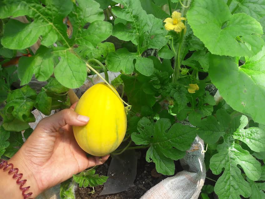 Buah Mesem alias buah melon semangka di Botanical e-Park. Mesem merupakan buah perkawinan silang antara buah melon dan semangka