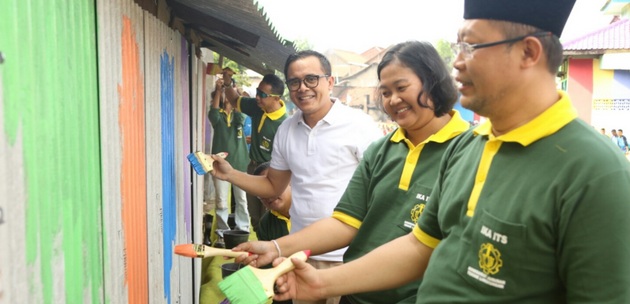 Bupati Anas melakukan pengecetan rumah di bantaran Kali Lo.