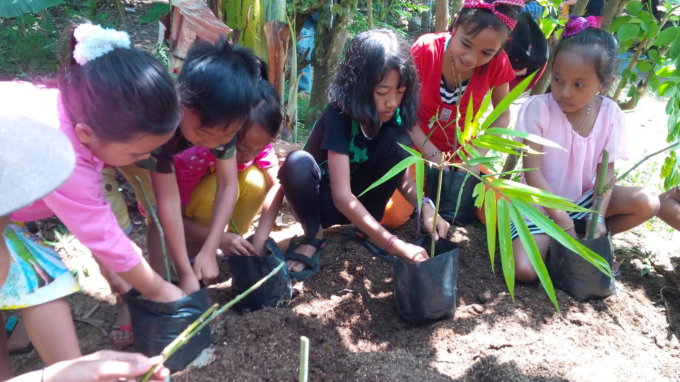 Anak-anak Kampoeng Batara tampak antusias saat melakukan pembibitan bambu