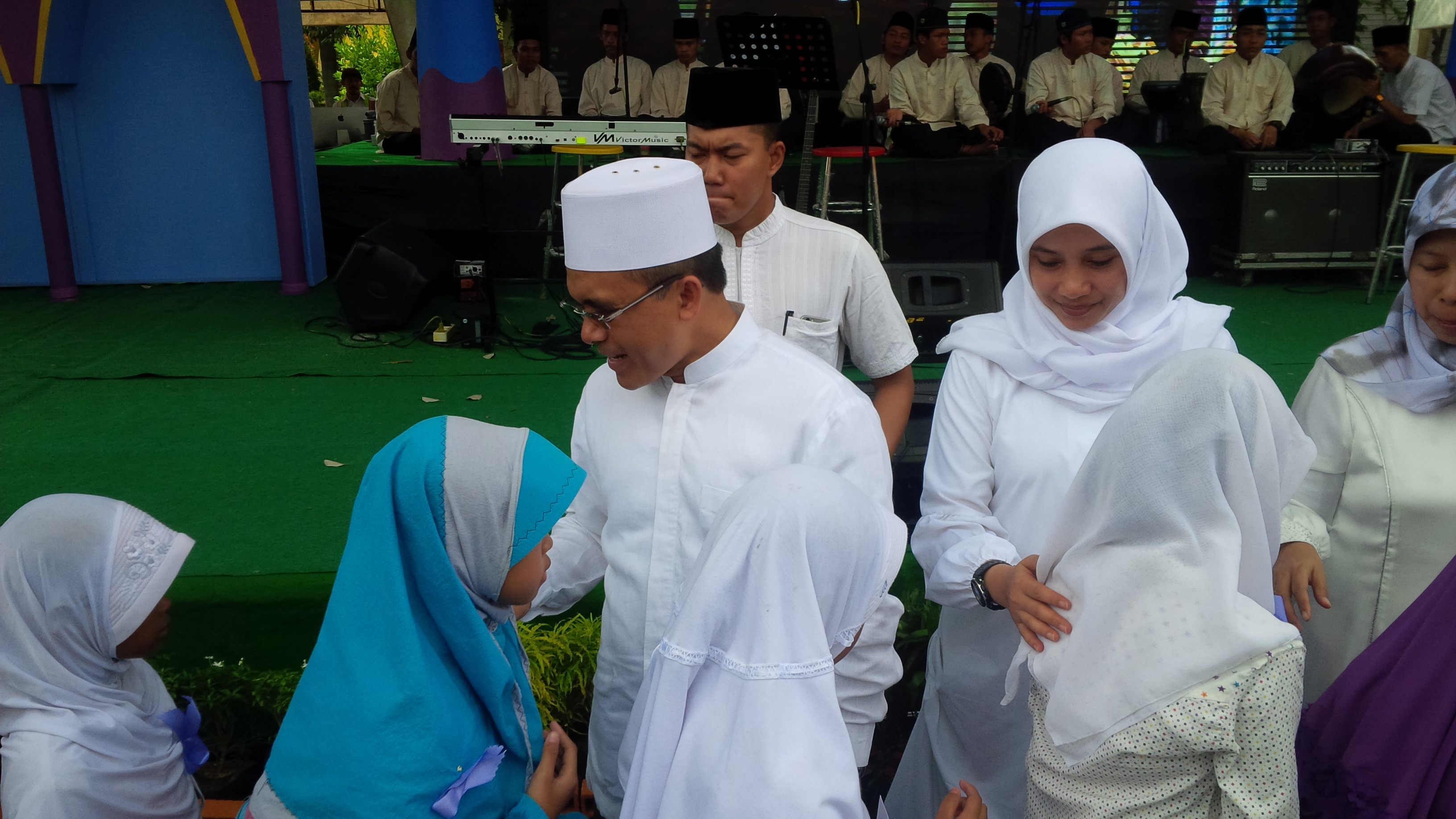 Bupati Anas tengah menyalami datu per satu anak yatim dalam Festival Anak Yatim.