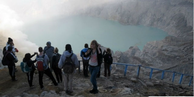 Wisatawan asing menikmati pemandangan alam di Kawah Ijen