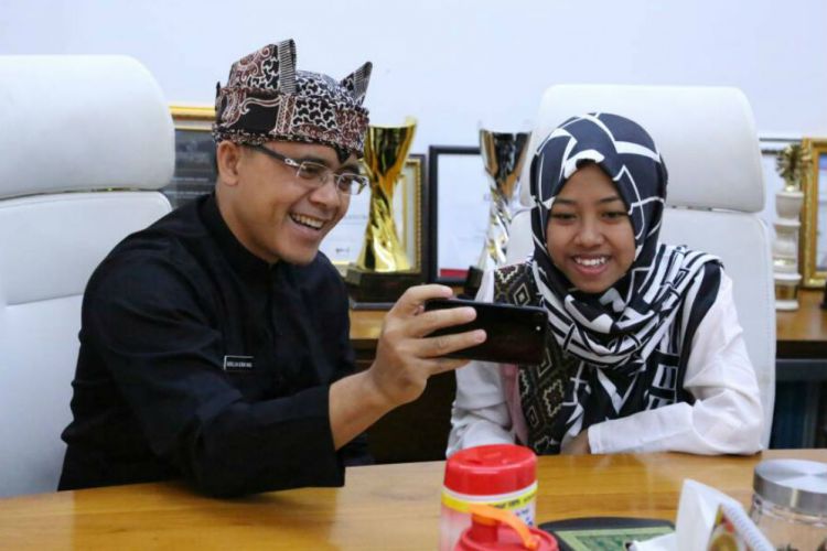 Merdeka.com, Banyuwangi - Bupati Banyuwangi Abdullah Azwar Anas bertemu dengan Afi Nihaya Paradisa, pelajar SMA Gambiran Banyuwangi yang tulisannya di Facebook kerap menjadi viral, Kamis (18/5). Di ruang kerjanya, Anas mengajak Afi sarapan bersama dengan menu pecel rawon.