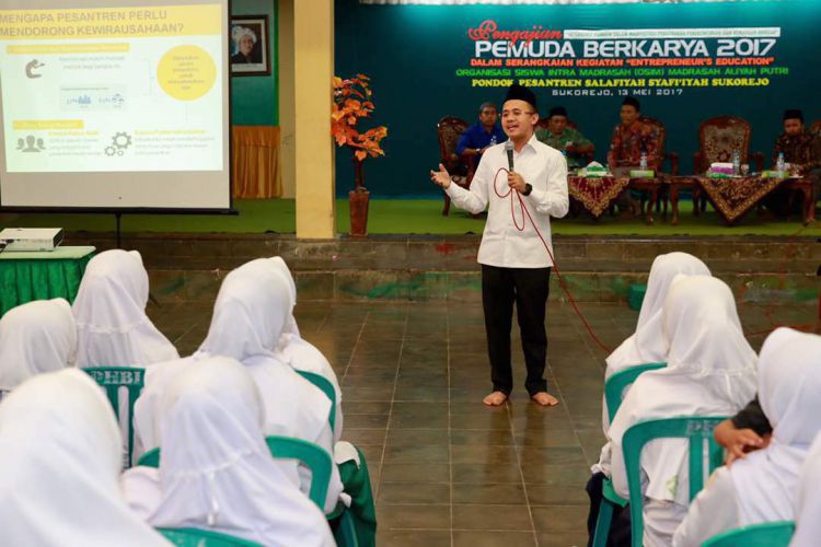 Wasekum HIPMI Jatim Mufti Anam dalam seminar kewirausahaan di Pesantren Salafiyah Syafiiyah, Situbondo. ©2017 Merdeka.com