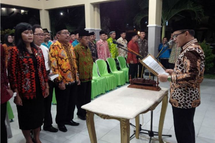 Pelantikan 47 pejabat baru di Kantor Balai Desa Bubuk. ©2016 Merdeka.com