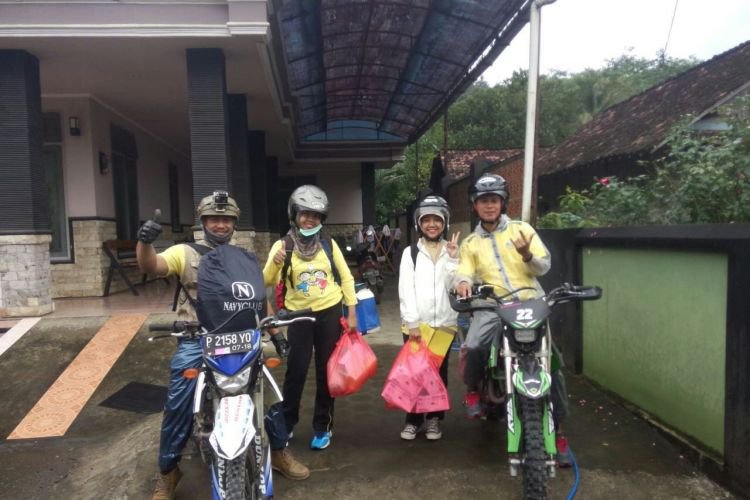 Merdeka.com, Banyuwangi - Rombongan petugas kesehatan mulai bidan, perawat dan dokter terlihat menggunakan sepeda motor trail menyusuri hutan di kawasan Taman Nasional Merubetiri, Desa Sukamade, Kecamatan Pesanggaran, Kabupaten Banyuwangi, Selasa (22/8). Para petugas kesehatan tersebut, rela menyusuri hutan, naik gunung sampai menyeberang sungai demi memberikan layanan imunisasi Maesles dan Rubella (MR) kepada 165 anak-anak di pelosok.