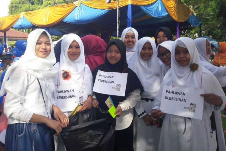 "Setelah acara kita langsung mungutin sampah dan dimasukin ke sini (kantong plastik). Kami bangga menjadi pahlawan kebersihan," ungkap Irmatul Laili, asal Yayasan Kesejehtetaan Muslimat Khodijah, Karangrejo.