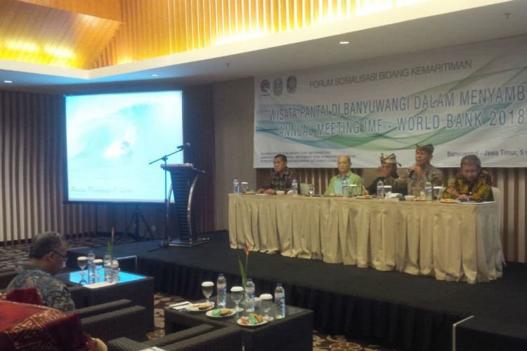 Merdeka.com, Banyuwangi - Kepala Badan Perencanaan dan Pembangunan Daerah (Bappeda) Banyuwangi, Suyanto Waspo Tondo W mengimbau agen-agen wisata untuk fokus dalam menetapkan segmen tamu yang diambil. Hal itu disampaikannya dalam acara forum sosialisasi bidang maritim wisata pantai di Banyuwangi dalam rangka menyambut Annual Meeting IMF - World Bank 2018 Bali, di Hotel Santika Banyuwangi, Kamis (5/4).