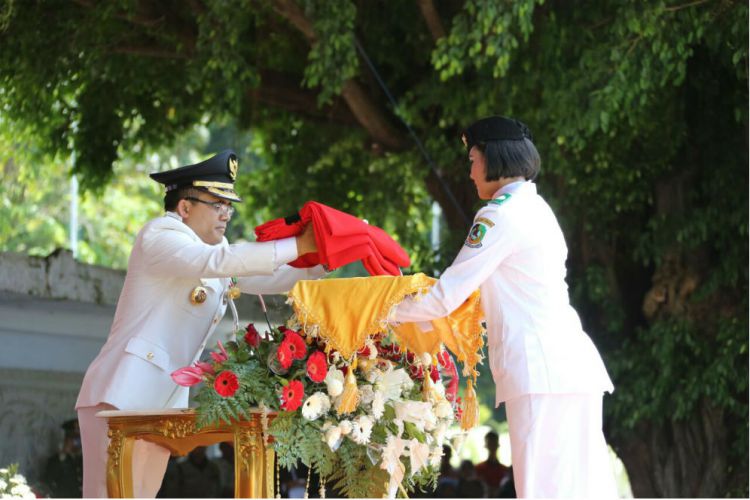 Merdeka.com, Banyuwangi - Bupati Abdullah Azwar Anas memimpin Upacara Detik-detik Proklamasi Kemerdekaan RI di Taman Blambangan, Banyuwangi, Jawa Timur, Rabu (17/8). Teks proklamasi dibacakan Ketua DPRD Banyuwangi, I Made Cahyana Negara, usai terdengar sirine selama sekitar satu menit.