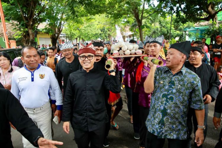 Bupati Anas ikut mengarak tempe mongkleng, Usai diarak, tempe raksasa itu kemudian diproses, lalu disantap bersama ribuan orang yang hadir.