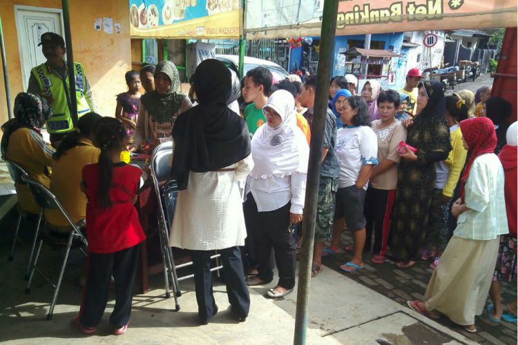 Warga pun rela mengantre untuk mendapatkan sembako dengan harga yang jauh lebih murah dari harga dipasaran.