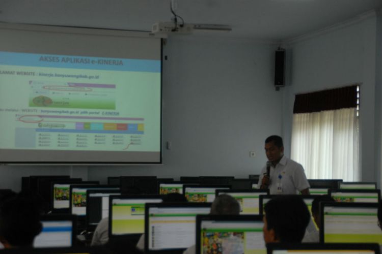 Sistem E-Kinerja saat ini sudah mulai dikenalkan kepada seluruh kepala SKPD di Banyuwangi secara bergilir. Siang itu, sebanyak 40 pejabat eselon 2 dan 3 terlihat sedang mendapat pelatihan bagaimana mengoperasikan aplikasi E-Kinerja di Aula BKD Banyuwangi. Setiap detail pekerjaan yang sudah dilaksanakan bisa dimasukkan ke dalam aplikasi tersebut.