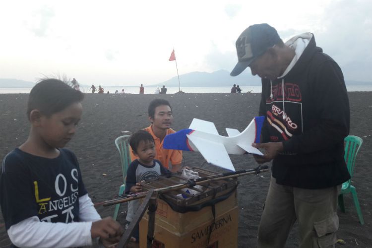 "Beli layangan kapal untuk anak. Mumpung di pantai ya anginnya kan kencang," ujar salah satu pembeli, Sofyan.