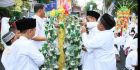 Pagi itu ratusan orang mengarak puluhan jodang (pelepah pisang) yang ditancapi telur dan ancak (wadah berisi nasi dan lauk pauk). Masing-masing biasanya ditancapi 50 telur, telur yang biasa dipakai adalah telur itik.