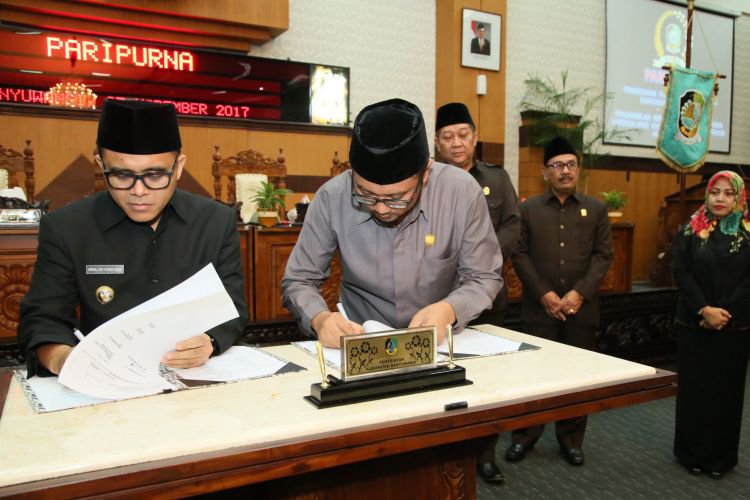 Merdeka.com, Banyuwangi - Setelah melalui pembahasan cukup cepat, Anggaran Pendapatan dan Belanja Daerah (APBD) Kabupaten Banyuwangi tahun 2018 disahkan Dewan Perwakilan Rakyat Daerah (DPRD) Banyuwangi, Senin (27/11). Pengesahan itu dilangsungkan dalam sidang paripurna dan disepakati oleh seluruh fraksi DPRD Kabupaten Banyuwangi.