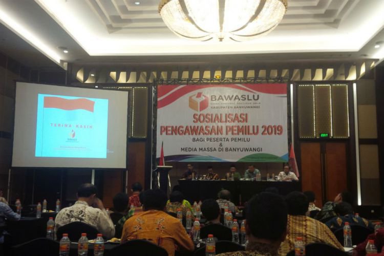 Hal itu disampaikan Divisi Pengawasan Bawaslu Banyuwangi Adrianus Yansen Pale dalam sosialisasi pengawasan pemilu 2019 di ballroom Hotel El-Royale Banyuwangi, Rabu (24/10). Dalam kesempatan itu hadir ratusan peserta pemilu 2019 dari kalangan partai politik, Panitia Pengawas Kecamatan (Panwascam), dan awak media.