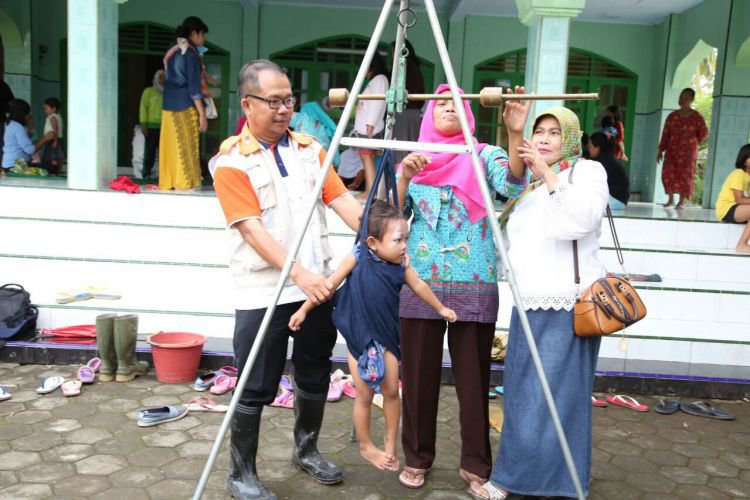 "Cucu saya gatal-gatal sejak kemarin soalnya main-main lumpur. Alhamdulillah, ada posyandu sekalian saya periksakan cucu saya, dan juga nimbang," kata Puji. Dua cucu Puji itu juga mendapat bantuan baju, karena banyak bajunya yang terendam lumpur.