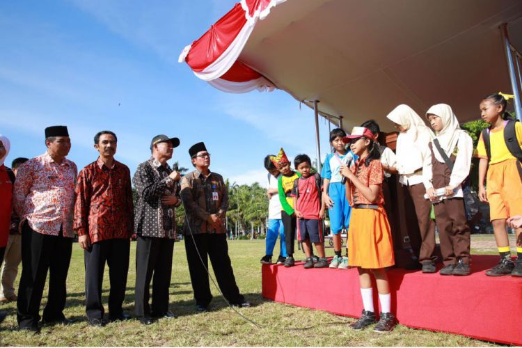 Merdeka.com, Banyuwangi - Menteri Pendidikan dan Kebudayaan Muhadjir Effendy menemui 16.500 siswa Sekolah Dasar di Taman Blambangan Banyuwangi, Jawa Timur. Kunjungan ini untuk mendukung kegiatan Discover Banyuwangi Membaca.