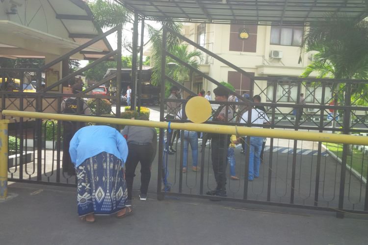 Gerbang masuk Mapolres hanya dibuka seukuran tubuh untuk keluar masuk. Masyarakat yang masuk untuk kepentingan mengurus SIM, SKCK dan dokumen lainnya diperiksa barang bawaannya.