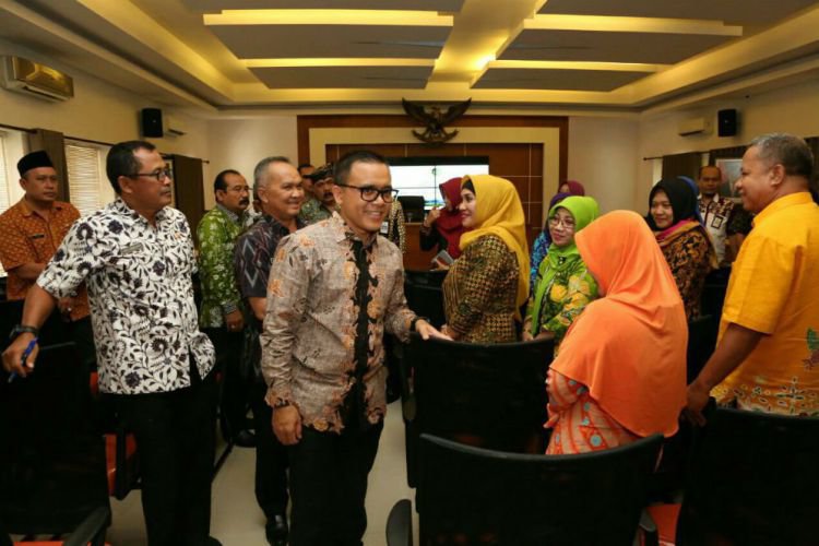 Merdeka.com, Banyuwangi - Bupati Banyuwangi Abdullah Azwar Anas menggelar pembekalan kepada pejabat baru beberapa dinas dan lembaga di ruang Rempeg Jogopati,Kantor Pemkab Banyuwangi, Jawa Timur, Kamis (9/8). Hal itu dilakukan setelah malam sebelumnya dilantik 40 pejabat, 7 orang di antaranya eselon II, termasuk Kepala Dinas Perindustrian dan Perdagangan(Perindag) Banyuwangi yang baru, Sih Wahyudi.
