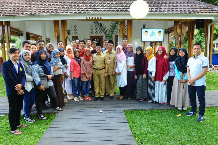 Merdeka.com, Banyuwangi - Bupati Banyuwangi Abdullah Azwar Anas mengundang 200 mahasiswa penerima beasiswa Banyuwangi Cerdas untuk halal bihalal di Pendopo Sabha Swagata Belambangan, Senin (11/7). Dalam kesempatan tersebut, Anas memberi motivasi kepada mahasiswa agar memiliki kreativitas, inovasi dan nantinya bisa menciptakan lapangan pekerjaan baru.