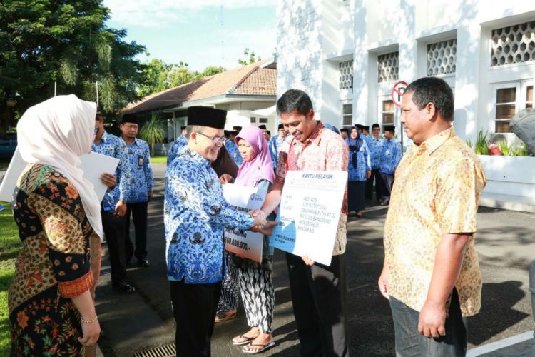 Merdeka.com, Banyuwangi - Bupati Banyuwangi Abdullah Azwar Anas secara simbolis menyerahkan klaim asuransi nelayan kepada dua janda nelayan di Banyuwangi, Jumat (17/2). Mereka masing-masing menerima Rp 160 juta sesuai ketentuan yang ada.