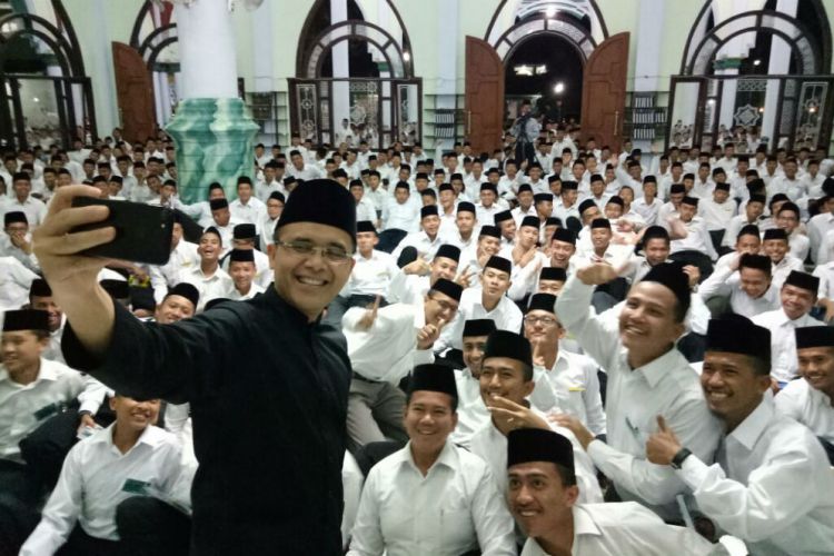 "Saya ingin lihat-lihat ke Gontor perkembangannya. Apakah jalannya rusak. Dulu masih rusak waktu ke sini, tapi sekarang sudah baik. Lingkungan seperti di pondok ini sangat penting, sehebat apapun anak-anak, kalau lingkungannya tidak mendukung, sulit maju. Pemda sudah akan memberi beasiswa sekolah pilot bagi yang hafal Alquran dan lolos bahasa," jelas Anas.