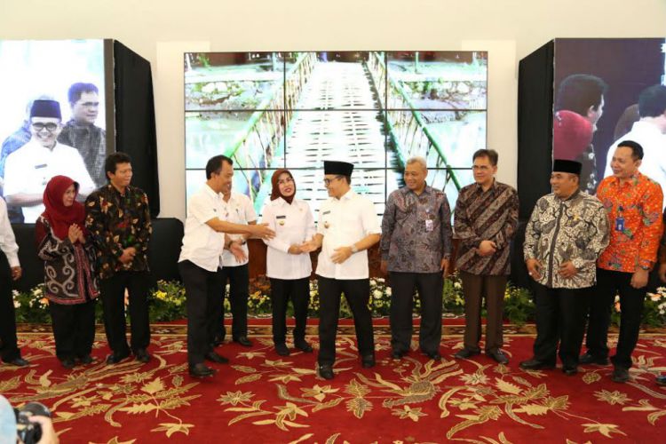 Penandatanganan MoU dilaksanakan di Pendopo Banyuwangi, Jawa Timur, Rabu (22/3). Sejumlah program yang kerja sama antara lain e-village budgeting, e-monitoring system, e-audit, program kependudukan ”Lahir Procot Pulang Bawa Akta”, pengembangan pariwisata dan perbaikan Sistem Akuntabilitas Kinerja Instansi Pemerintahan (SAKIP). Banyuwangi adalah kabupaten pertama dan satu-satunya di Indonesia yang mendapat nilai SAKIP A atau tertinggi.
