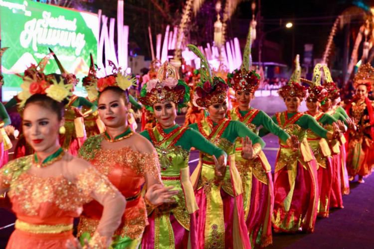 Merdeka.com, Banyuwangi - Festival Kuwung yang digelar di Banyuwangi, Sabtu malam (8/12), berlangsung meriah. Festival Kuwung, sebagaimana namanya yang berarti pelangi, menghadorkan beragam seni budaya yang tumbuh di seluruh pelosok Banyuwangi.