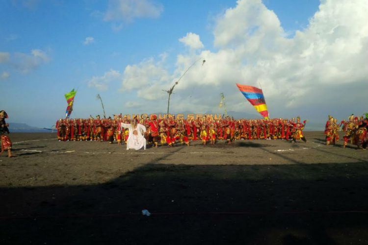 Merdeka.com, Banyuwangi - Sekitar pukul 15.00 WIB pertunjukan kolosal Tari Gandrung Sewu di Pantai Boom, Banyuwangi, dibuka Wakil Bupati Yusuf Widiatmoko, Sabtu (17/9). Festival Gandrung Sewu yang kali kelima mengambil tema: "Seblang Lukinto."