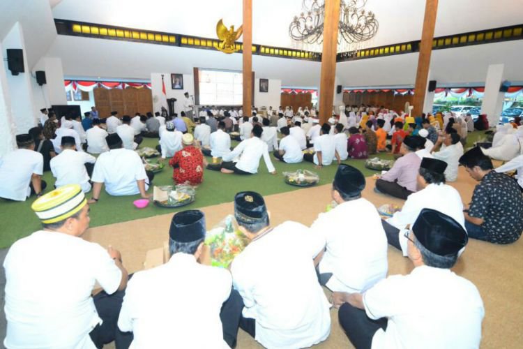 Merdeka.com, Banyuwangi - Pemerintah Kabupaten Banyuwangi, Jawa Timur, menggelar tasyakuran atas kemerdekaan Republik Indonesia (RI) yang ke 73 di Pendopo Sabha Swagata Blambangan, Kamis (16/8). Ratusan aparatur sipil negara (ASN) hadir untuk mengikuti acara yang digelar dengan kegiatan ceramah agama dan doa bersama itu.