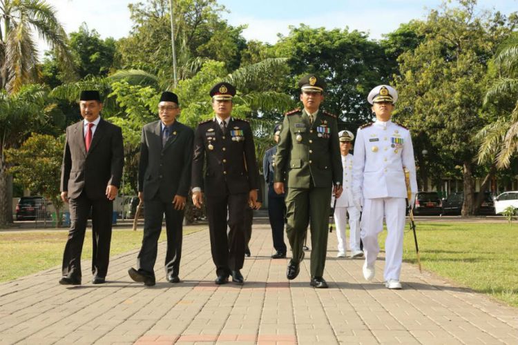 Merdeka.com, Banyuwangi - Memperingati Hari Pahlawan ke-71, Banyuwangi gelar upacara bendera dengan tema Satukan Langkah Untuk Negeri. Acara digelar di Taman Blambangan. Upacara dipimpin oleh Wakil Bupati Banyuwangi, Yusuf Widyatmoko selaku Inspektur Upacara dan diikuti oleh para veteran pejuang, tokoh generasi pejuang, Forum Pimpinan Daerah (Forpimda), para pejabat komponen Pemkab, instansi vertikal, anggota PKK, Dharma Wanita, TNI, Polri, KORPRI gabungan, organisasi kepemudaan, mahasiswa, pelajar, anggota Pasukan Pengibar Bendera (Paskibra) 2016 serta korp musik pemda ini berlangsung cukup khidmat.