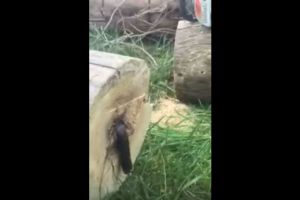 Video pria terkejut bukan main lihat sesuatu keluar dari batang pohon