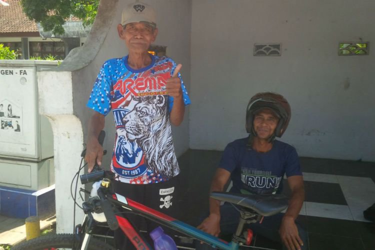Merdeka.com, Banyuwangi - Kakek tiga cucu, Kinariyo (65) sejak pukul 06.00 WIB mulai mengayuh sepeda onthel dari rumahnya menuju RTH Maron Kecamatan Genteng yang menjadi garis start perhelatan International Tour de Banyuwangi Ijen (ITdBI) 2018, Jumat (28/9).