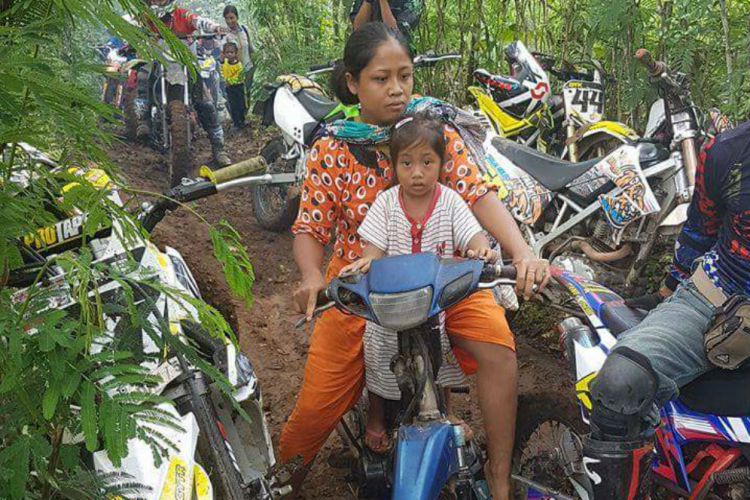 Tidak hanya Ibu-ibu, Andre berserta rombongannya juga sempat bertemu dengan seorang pria tua dengan sepeda motor maticnya. Melalui jalur yang sama sambil membawa bibit sengon. Dia hanya heran, mengapa bisa berjalan lancar, padahal motor trail sudah didesain untuk melintasi jalur sulit.