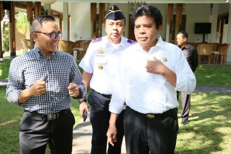 Dirjen Perhubungan Udara Kementerian Perhubungan, Agus Santoso dan Bupati Anas. ©2017 Merdeka.com