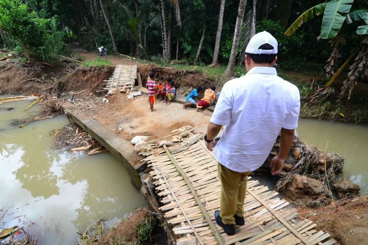 Merdeka.com, Banyuwangi - Bupati Abdullah Azwar Anas meninjau jembatan ambrol akibat diterjang banjir di Desa Pancer, Kecamatan Pesanggaran, Banyuwangi, Senin (15/1). Anas memastikan jembatan tersebut akan segera dibangun pemkab menggunakan dana APBD 2018.