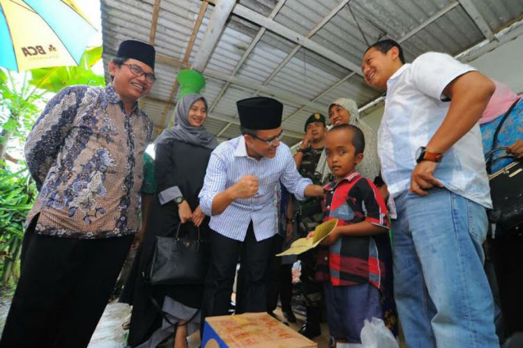 Bupati Anas mengunjungi kediaman Beny Susanto yang menderita hidrosefalus. ©2017 Merdeka.com