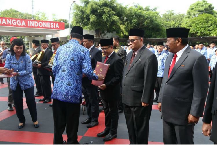 Merdeka.com, Banyuwangi - Pemkab Banyuwangi mendapatkan penghargaan sebagai kabupaten berkinerja terbaik dari Kementerian Dalam Negeri. Penghargaan “Satya Lencana Karyabhakti Praja Nugraha” itu diserahkan langsung Menteri Dalam Negeri Tjahjo Kumolo atas nama Presiden Joko Widodo (Jokowi) kepada Bupati Abdullah Azwar Anas di Jakarta, Jumat (9/11).