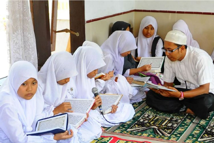 Seperti di musola milik Kecamatan Banyuwangi Kota misalnya. Di tempat ini, tampak sekitar 20 pelajar dari dua sekolah dasar (SD) berbeda, membaca Alquran secara bergantian. Yang satu membaca, lainnya menyimak dan mengoreksi tajwid-nya.