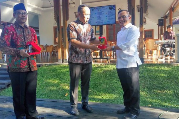 Bupati Anas saat bertukar cindera mata dengan Komite KEIN RI. ©2017 Merdeka.com