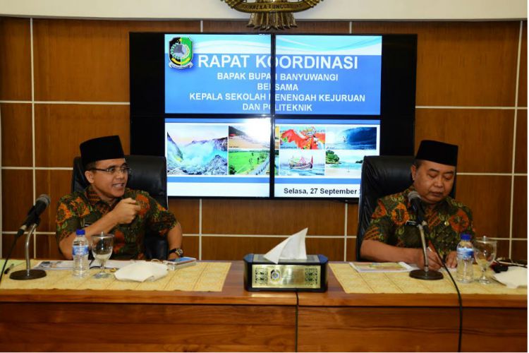 Rapat koordinasi yang digelar di Ruang Rempeg Jogopati Pemkab Banyuwangi dihadiri anggota Komisi IV DPRD Banyuwangi. “Kita akan siapkan sekolah-sekolah, khususnya kejuruan dan akan kita integrasikan dengan pelatihan-pelatihan,” kata Anas.