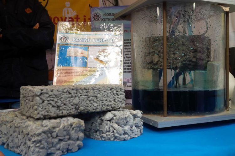Merdeka.com, Banyuwangi - Festival Teknologi Inovatif di Taman Blambangan, Kabupaten Banyuwangi, menampilkan berbagai temuan akademis. Salah-satunya paving berpori yang bisa langsung menyerap air sehingga lebih ramah lingkungan.
