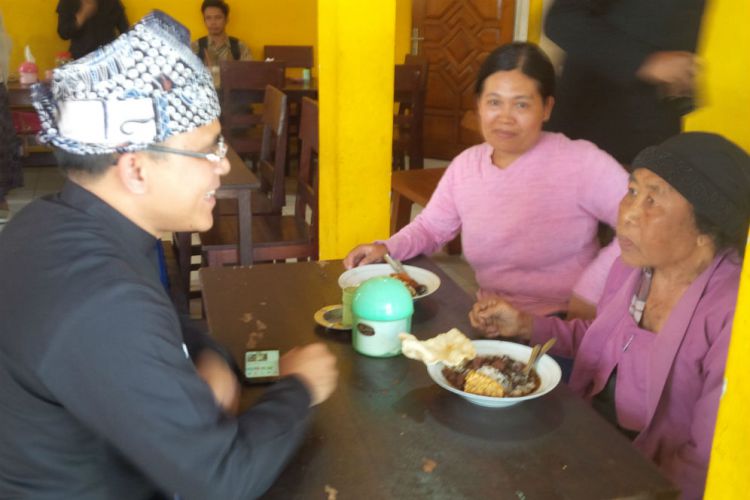 Merdeka.com, Banyuwangi - Bupati Banyuwangi Abdullah Azwar Anas tiba-tiba ingin merasakan cita rasa kuliner di warung pinggiran, di Warung Sego, samping lampu merah Kelurahan Tukangkayu, Kabupaten Banyuwangi, Kamis (20/4). Saat datang di Warung Sego, Anas tertarik duduk satu meja dengan seorang nenek asal Singojuruh. Saat itu juga, Anas penasaran ada seorang nenek tapi makan nasi rawon.