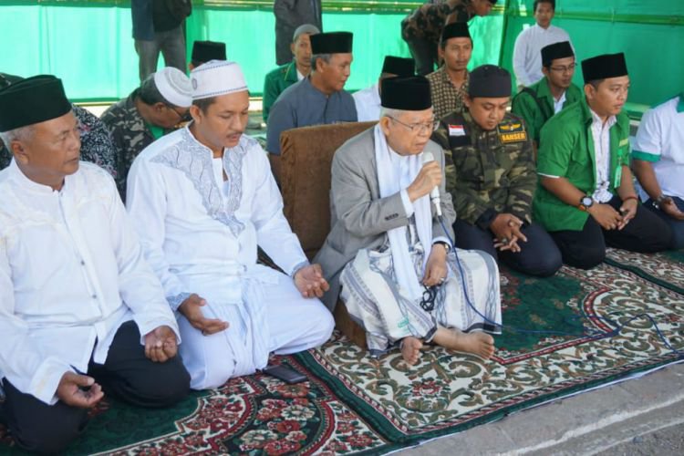 Merdeka.com, Banyuwangi - Calon wakil presiden Ma'ruf Amin datangi makam salah satu pendiri organisasi Nahdlatul Ulama (NU) Kiai Saleh untuk berziarah, di Lateng, Kabupaten Banyuwangi, Rabu (31/10).