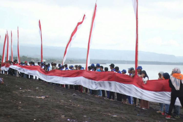 Kali ini untuk yang pertama, mereka membentangkan kain merah putih sepanjang 73 meter di sepanjang pantai Pulau Santen untuk upacara memperingati kemerdekaan ke Indonesia ke 73.