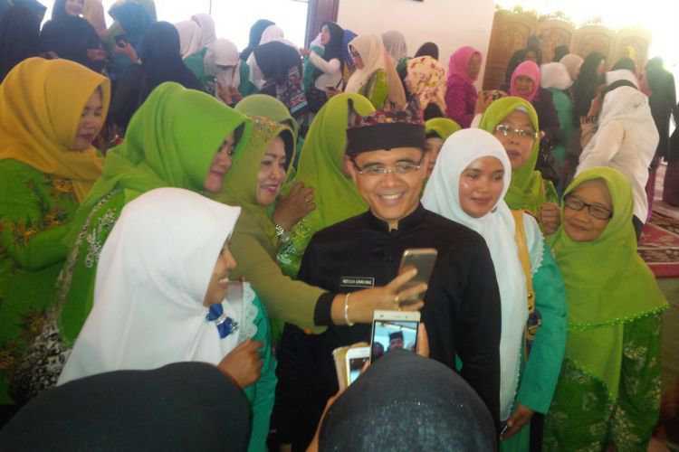 Merdeka.com, Banyuwangi - Ratusan Ibu-ibu yang tergabung dari berbagai elemen organisasi wanita se-Kabupaten Banyuwangi beramai-ramai mengunjungi Pendopo Sabha Swagata Blambangan, Selasa (9/1). Para Ibu-ibu tersebut sengaja datang untuk bertemu Bupati Banyuwangi Abdullah Azwar Anas, mereka berharap agar Anas bisa tetap maju dalam kompetisi pemilihan gubernur Jawa Timur 2018.