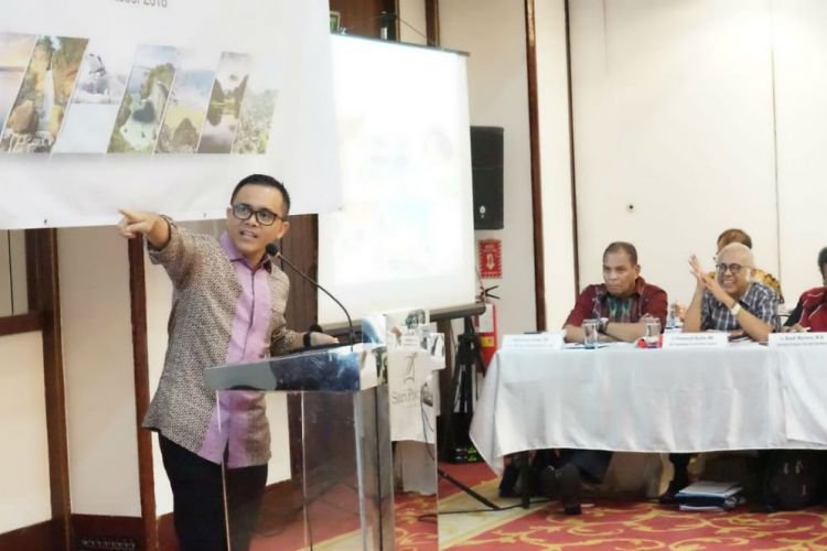Bupati Anas mempresentasikan keunggulan tiga situs di Banyuwangi yang dinilai ada keunikan geologinya, yaitu Blue Fire di Gunung Ijen, Pulau Merah, dan Taman Nasional (TN) Alas Purwo.